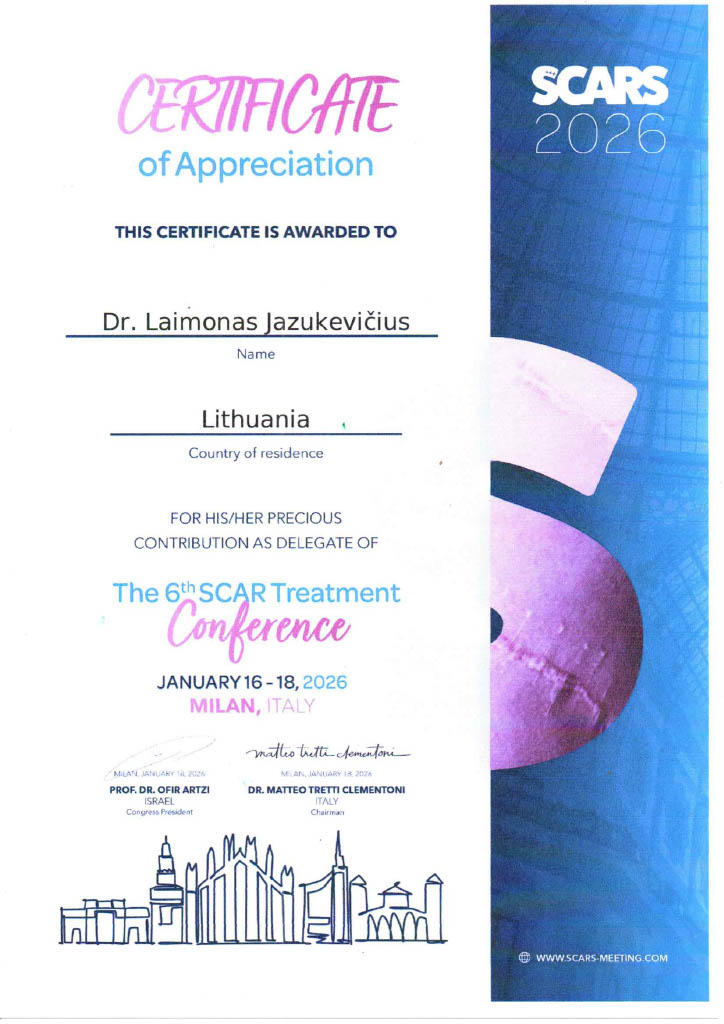 Randų (atrofinių, hipertrofinių, keloidinių)